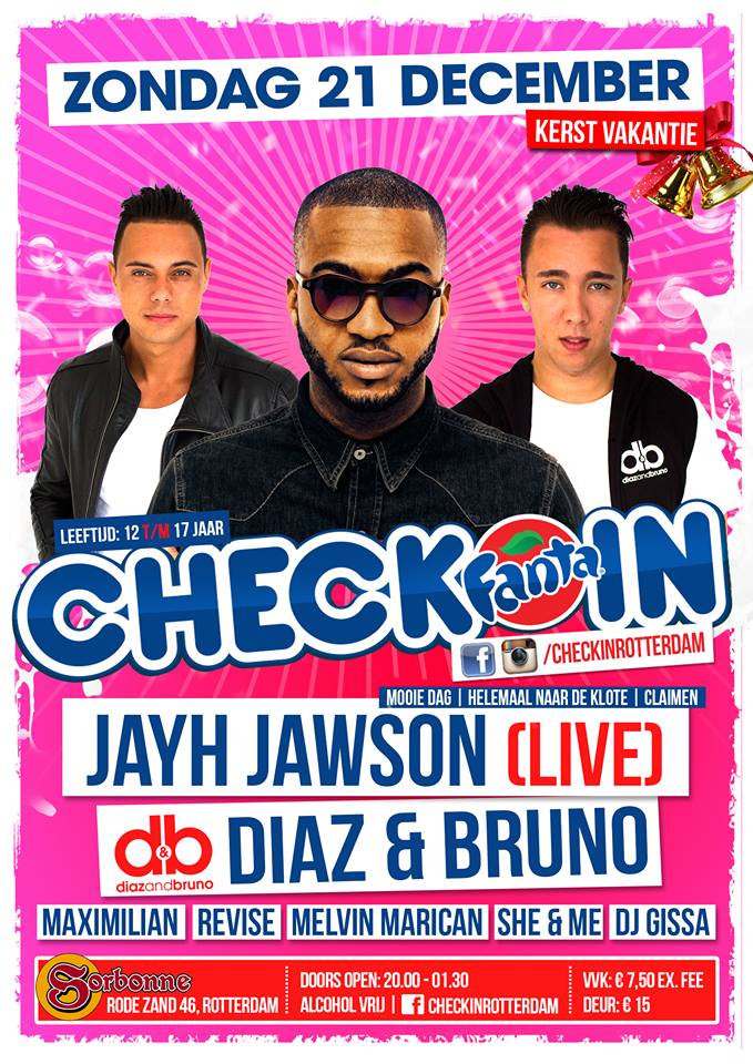 DJ Gijs is resident DJ bij het grootste jongeren feest van Nederland: Check in! Check in word regelmatig gehouden in Sorbonne Rotterdam. Het feest is speciaal voor jongeren van 12 t/m 17 jaar. Grote artiesten traden op op Check in. Bijvoorbeeld Broederliefde, Jayh Jawson en Mr Polska. De volgende editie is al op 21 december!